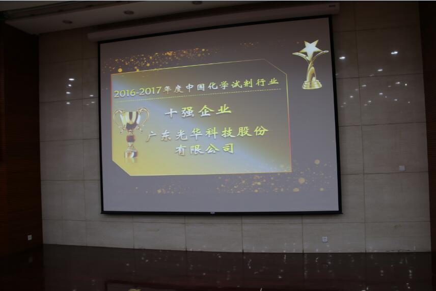作為本次會議的重頭戲之一,大會公布了由全國化學(xué)試劑信息總站評選的2016-2017年度中國化學(xué)試劑行業(yè)十強企業(yè)名單,這些企業(yè)代表著國內(nèi)化學(xué)試劑行業(yè)的中堅力量。光華科技憑借近40年來在化學(xué)試劑領(lǐng)域的深厚耕耘及不斷進(jìn)取,再次躋身十強企業(yè)名單!