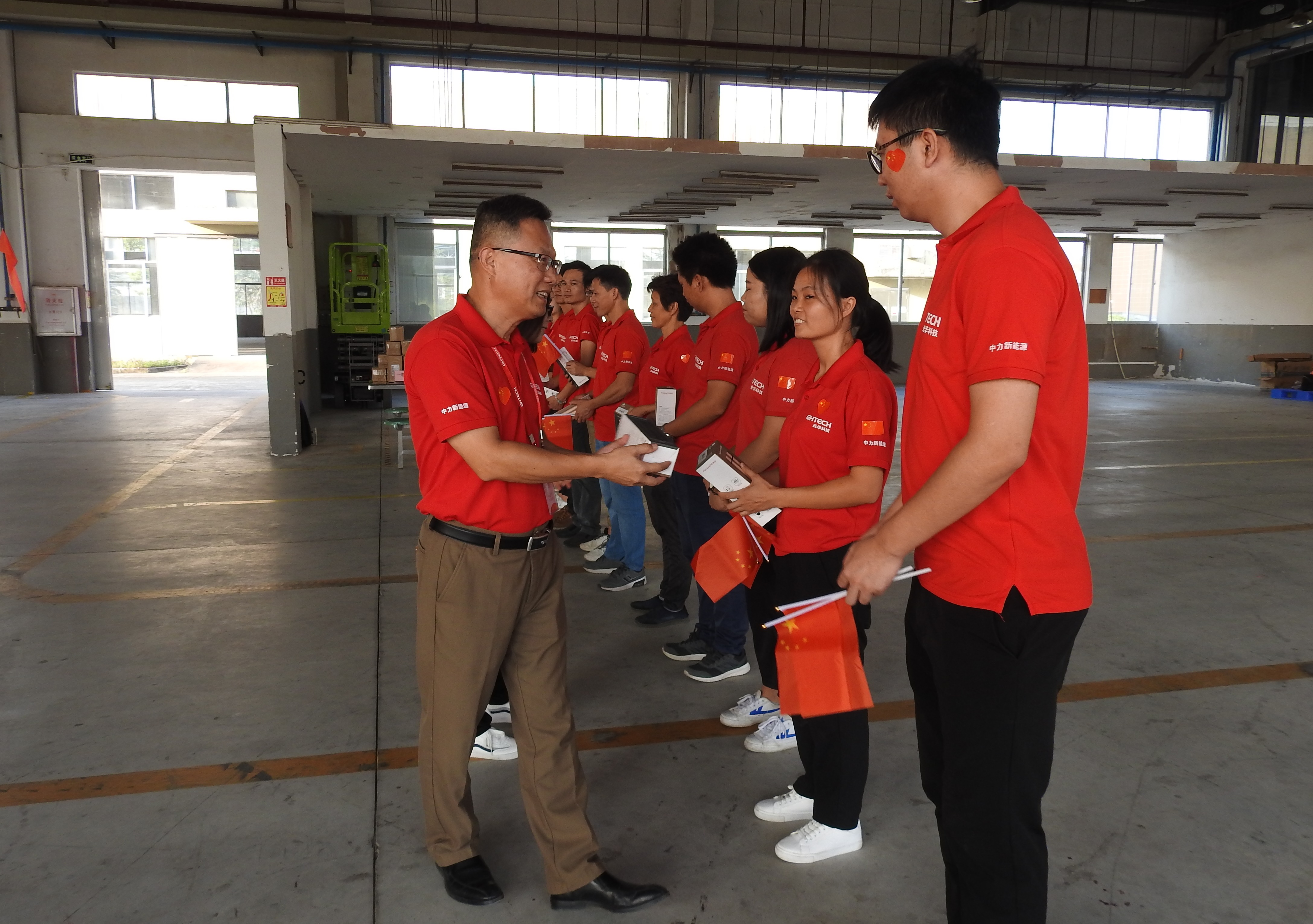 團(tuán)建活動如火如荼,珠海市富山管委會副主任容立雄先生,光華科技董事、副總裁鄭俠先生親臨活動現(xiàn)場,對光華科技-珠海中力新能源在國慶前夕用自己的方式來慶祝祖國70華誕表示高度贊揚(yáng)。并與活動現(xiàn)場的所有人員一起進(jìn)行了莊嚴(yán)肅穆的唱國歌儀式。我們所有伙伴都用心吶喊“祖國母親,生日快樂”。
